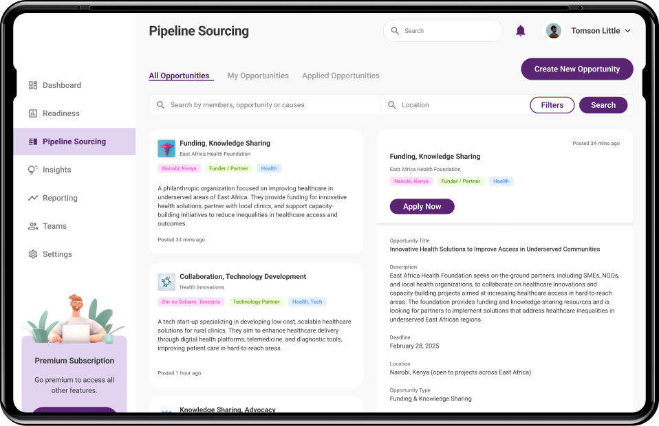 We implemented this feature to streamline the process for investors. It uses data insights to identify high-potential opportunities which include investment prospects, supply chain partnerships, and commercial engagements. It delivered a steady pipeline of curated opportunities by matching investors with SMEs that align with their focus areas. This facilitated the creation of a mutually beneficial ecosystem, enabling investors to build strategic connections and maximize their societal and environmental impact.
