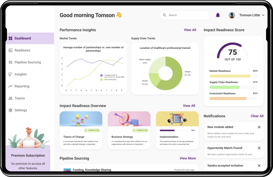 Investors and social entrepreneurs who want to make a positive societal impact often struggle to find as well as support SMEs that align with their specific goals. Despite growing efforts to promote sustainable growth, the current system remains fragmented with limited availability of high-impact opportunities as well as tools to track real-world outcomes.