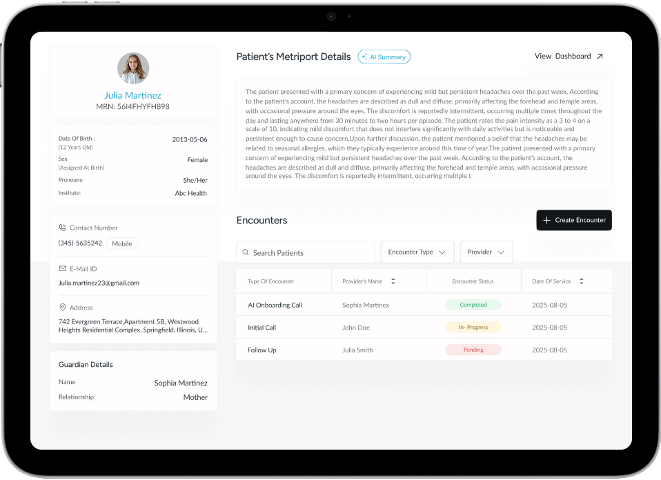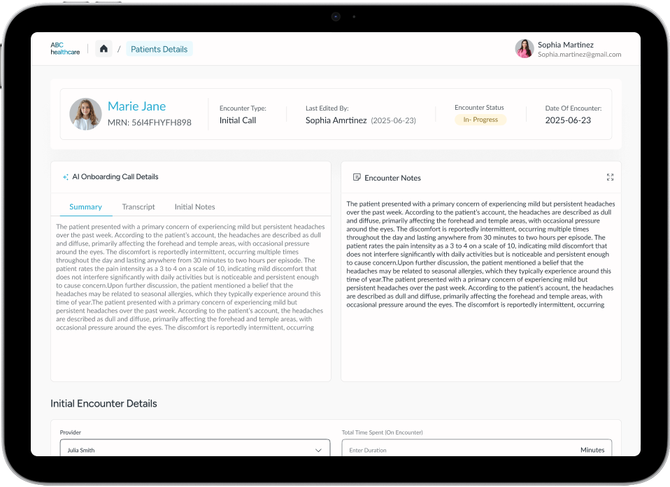 After intake calls are complete, the system merged the structured HIE data, AI call transcripts, and encounter metadata. This combined context was passed to a custom prompt pipeline using Azure OpenAI. The output included a high-level clinical note, CPT codes for billing context, and MDM justification explaining how conclusions were reached.