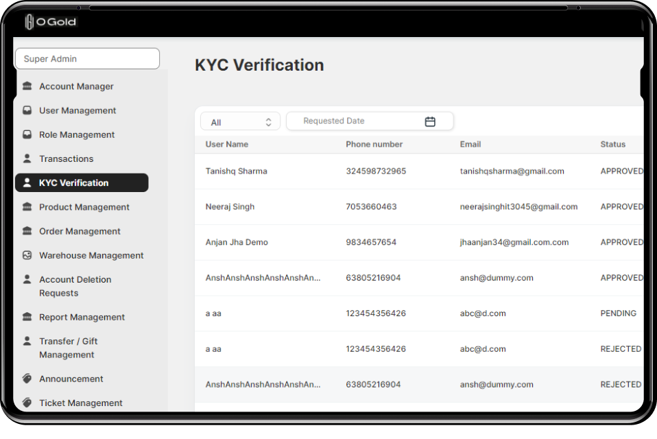 We incorporated a KYC (Know Your Customer) verification and approval section to ensure compliance with regulatory requirements. This feature allows administrators to review and approve user documents, confirming that all users meet necessary identification criteria before engaging in transactions. It ensures that the platform adheres to legal standards and helps prevent fraudulent activities.