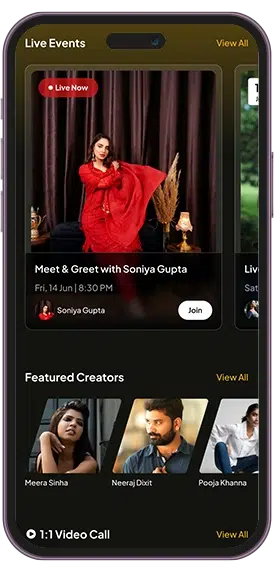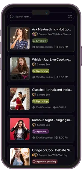 We built an intuitive fan access feature that allows users to explore upcoming celebrity events, register with ease, and join live sessions or physical meetups. The interactive interface supports real-time engagement in order to let fans ask questions, send reactions, and participate actively during events for a more collaborative experience.
