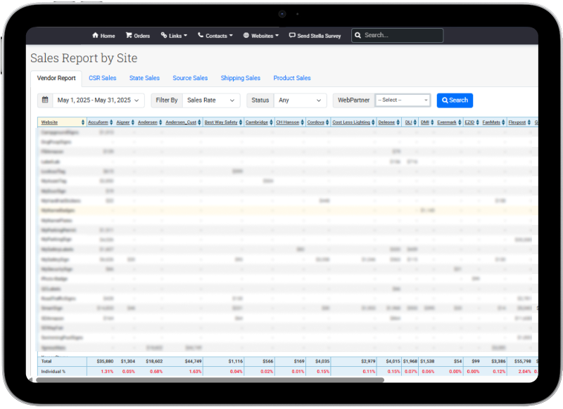 This feature enabled the client to track sales performance across their entire network of signage websites. By consolidating sales data in a unified dashboard, the client could easily compare revenue trends and identify top-selling products. This visibility enabled data-driven decision-making and the optimization of sales strategies.