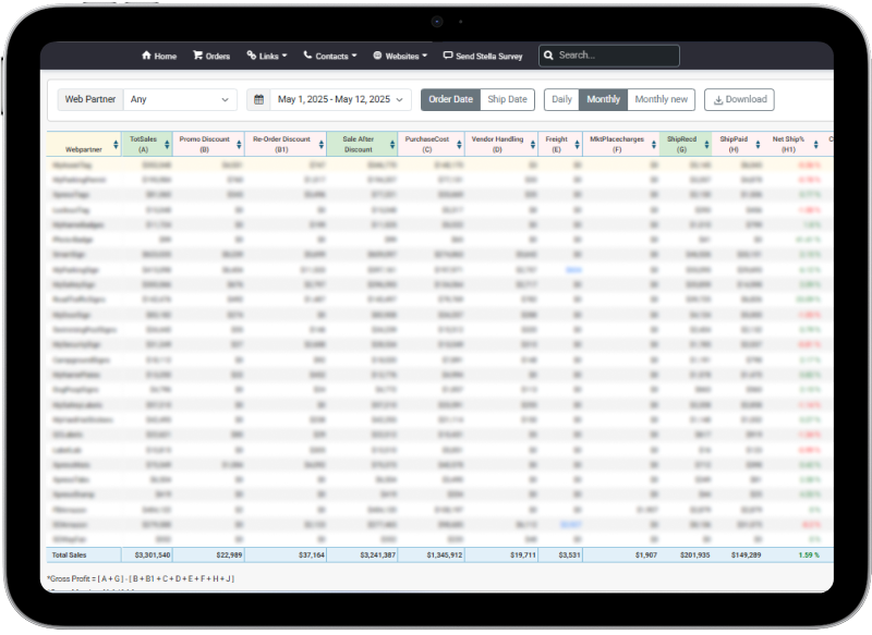 By centralizing order data from multiple signage websites, the client was able to streamline the entire order management process. With a clear, consolidated view of order statuses, processing timelines, and fulfillment updates, the client could quickly identify bottlenecks and resolve issues. This approach improved efficiency, reduced errors, and ensured that all orders were fulfilled accurately and on time, even during high-volume periods.