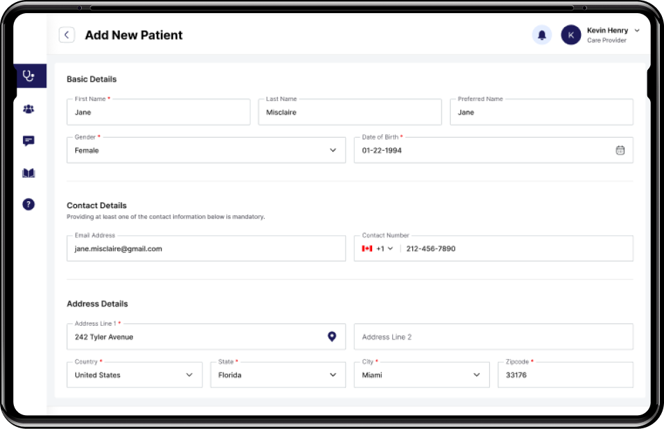 Patient onboarding form: Providers / medical practitioners could onboard new patients and collect their medical history through a seamless onboarding form and initiate the referral process.