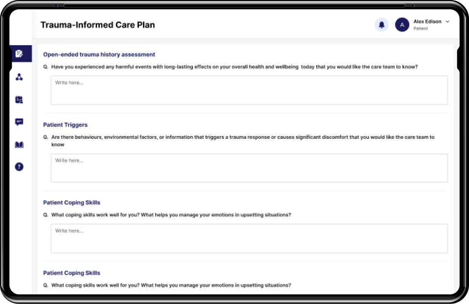 The client, an emerging health-tech firm, aimed to address these pain points with a holistic, patient-centered solution that could assess patient’s trauma and align them with the trauma- informed community partners.